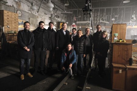 Am Set in Leipzig kamen zusammen Mark Stehli (Herstellungsleitung), Producer Tobias Gerginov (Intaglio Films), Executive Producer Jan Wünschmann, Dr. Markus Görsch (MDM), Dominik Berg (Kamera), Solveig Cornelisen (ZDF), Regisseurin Barbara Eder, Claas Danielsen (MDM), Showrunner Frank Doelger und Produzentin Ute Leonhardt (v.l.n.r.)