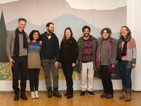 Auf dem Foto am Set in Halle (Saale): Holm Tadikken (Neufilm), Safinaz Sattar (Darstellerin Latifa), Regisseur Leis Bagdach, Dana Messerschmidt (MDM), Kostja Ullmann (Darsteller Yak), Konstanze Wendt (MDM), Antje Mutzeck (Staatskanzlei Sachsen-Anhalt) (v.l.n.r.)